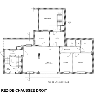 The entrance opens onto a main hallway with an elevator and a granito staircase. All apartments have a spacious living and dining room, a fitted kitchen with balcony, separate wc. The apartments on the left are 2 bedroom apartments with a bathroom and a shower room. The 5th floor apartment has one bed-room. The apartments on the right side, overlooking gardens at the back, are 3 bedroom apartments with a bath-room. The underground level holds plenty of cellars and storage spaces. |